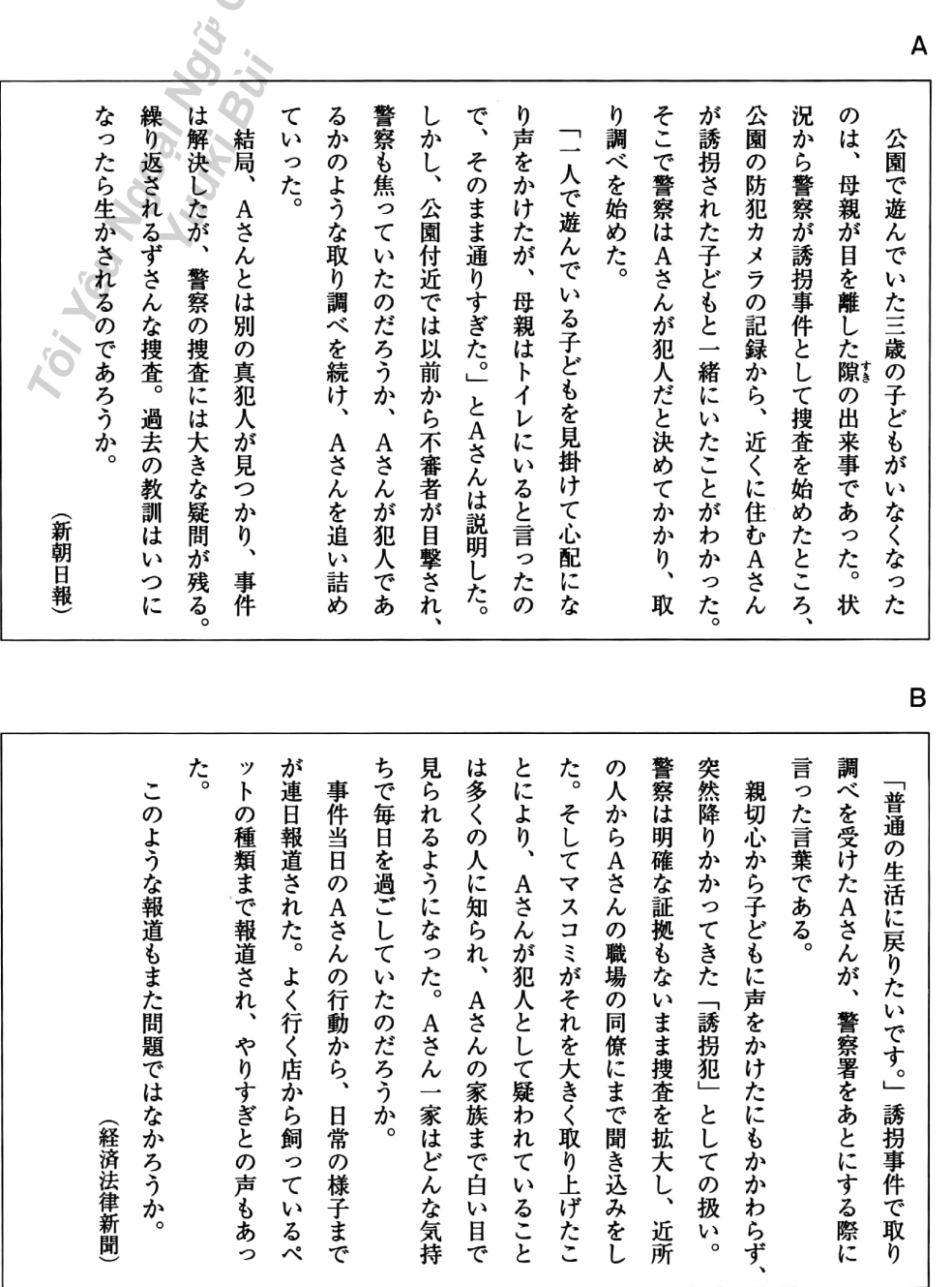 2。 (64)この事件での警察の対応について、Aの筆者とBの筆者はどのような立場をとっているか。